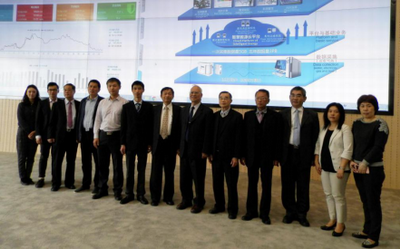 來訪嘉賓在新聯(lián)能源綜合服務云平臺監(jiān)控大廳合影留念